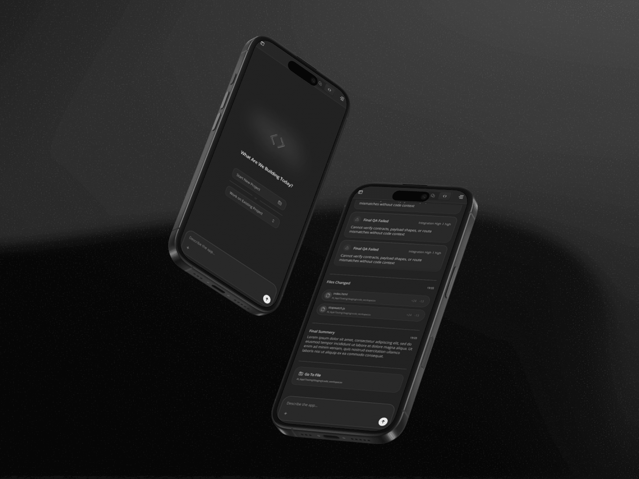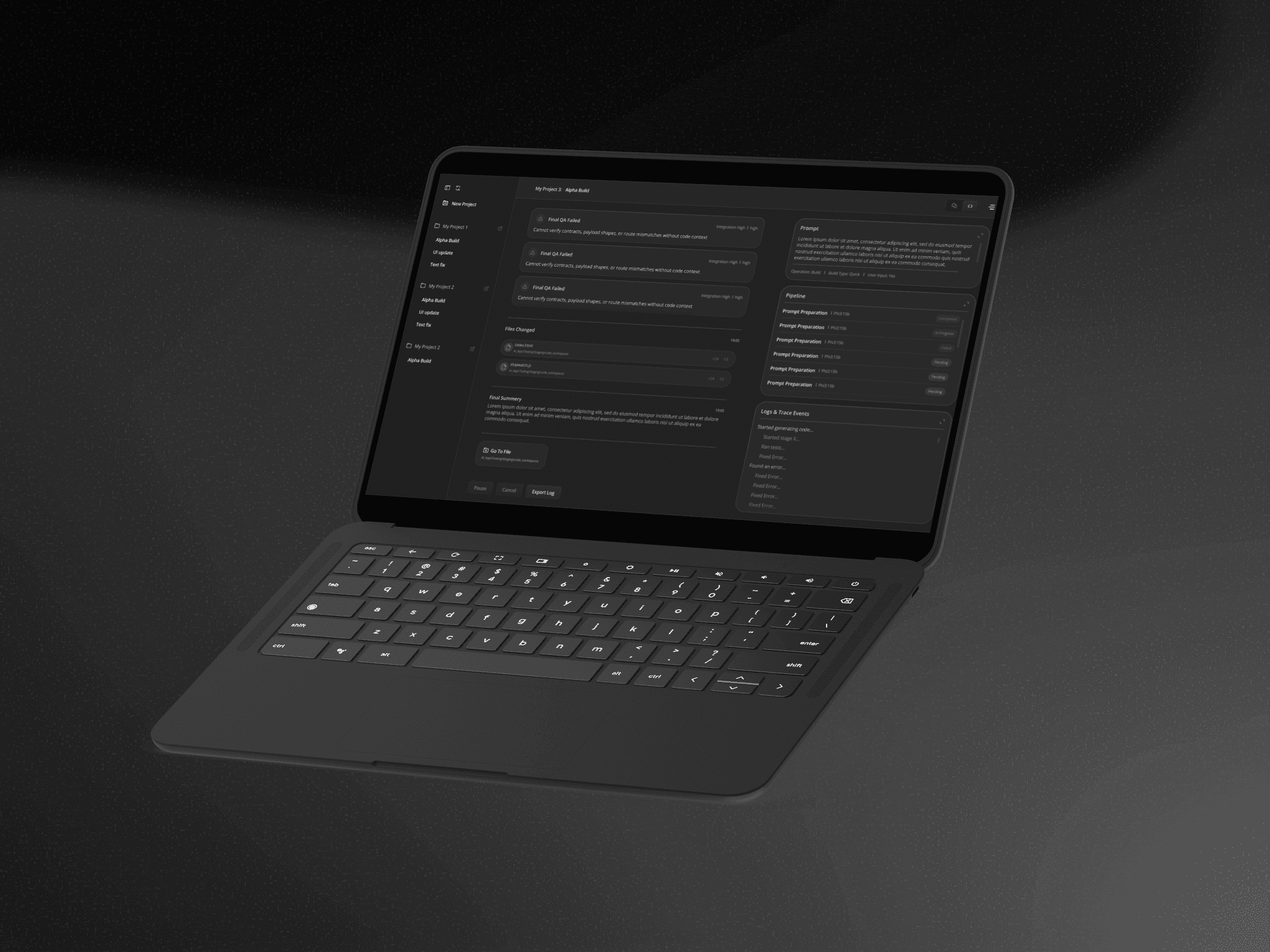 A self-built AI coding platform designed in Figma and engineered as a scalable, model-agnostic development system.
