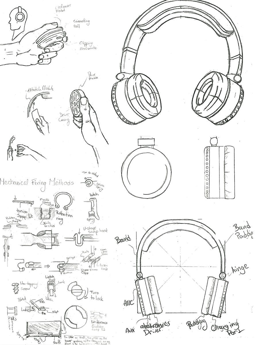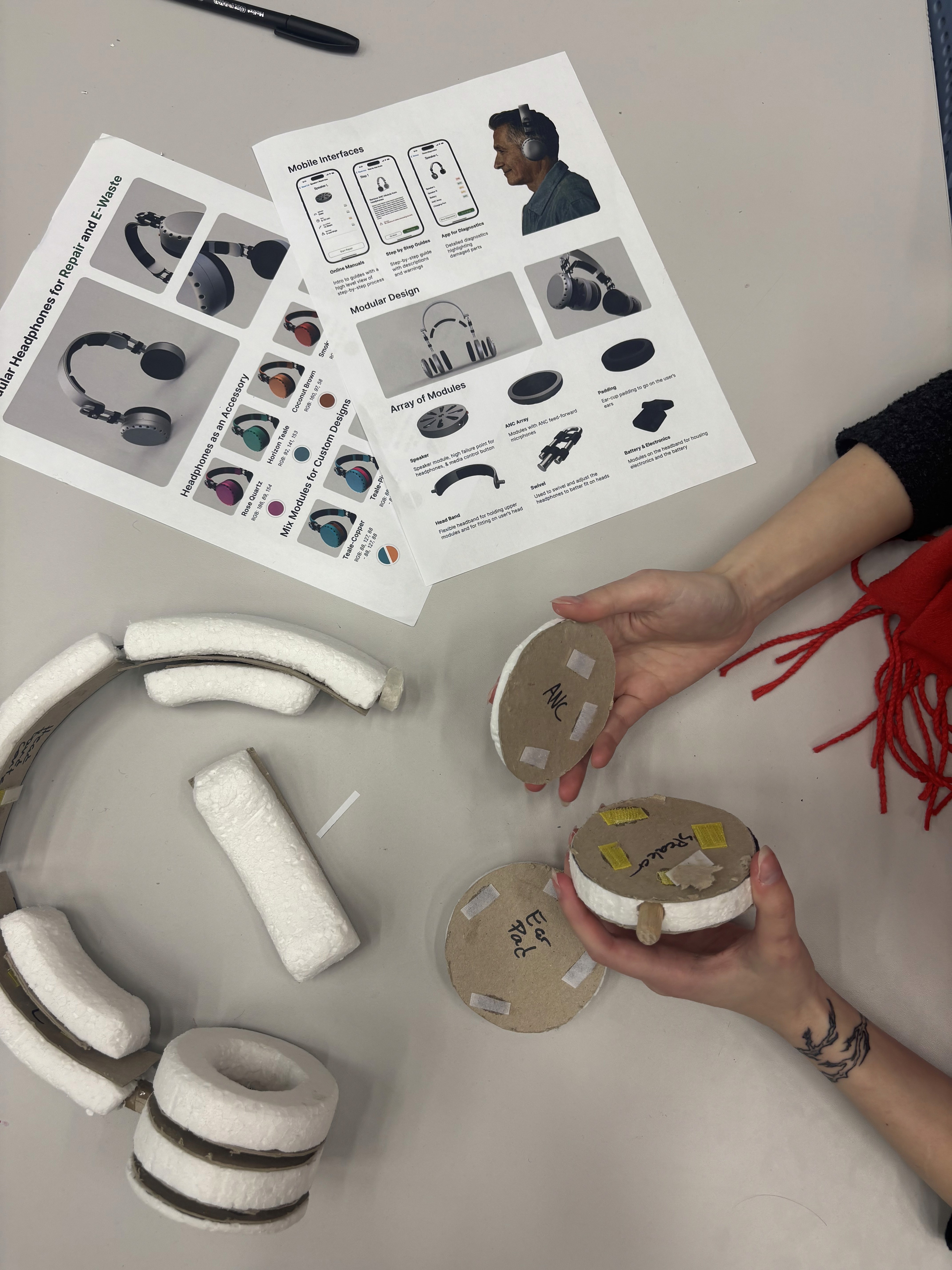 Modular over-ear headphones designed to reduce e-waste through repairable hardware, supporting app, and reward-based business model. (Thesis Project)