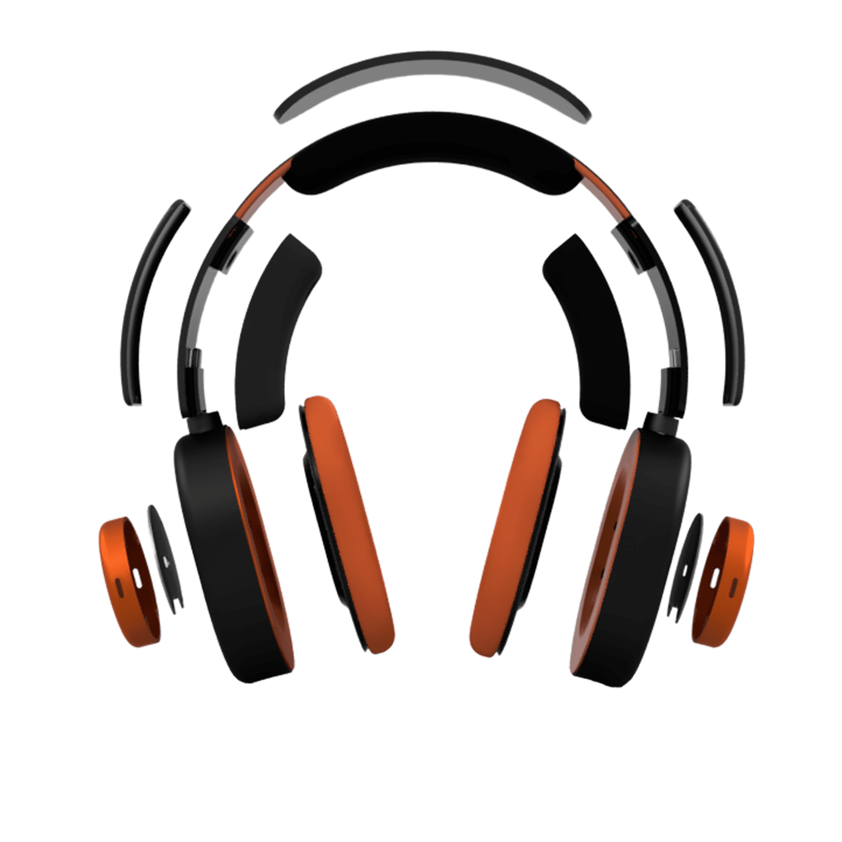 A modular over-ear headphone system with five tool-free, replaceable components enables part-level repair and upgrades. It’s supported by a diagnostic app and a return-and-reward scheme to encourage maintenance and recycling, while customization options increase emotional attachment and reduce replacement. Developed as my thesis, it forms a repair-focused ecosystem to extend product lifespan and reduce e-waste, earning the School of Engineering Sustainability Award.