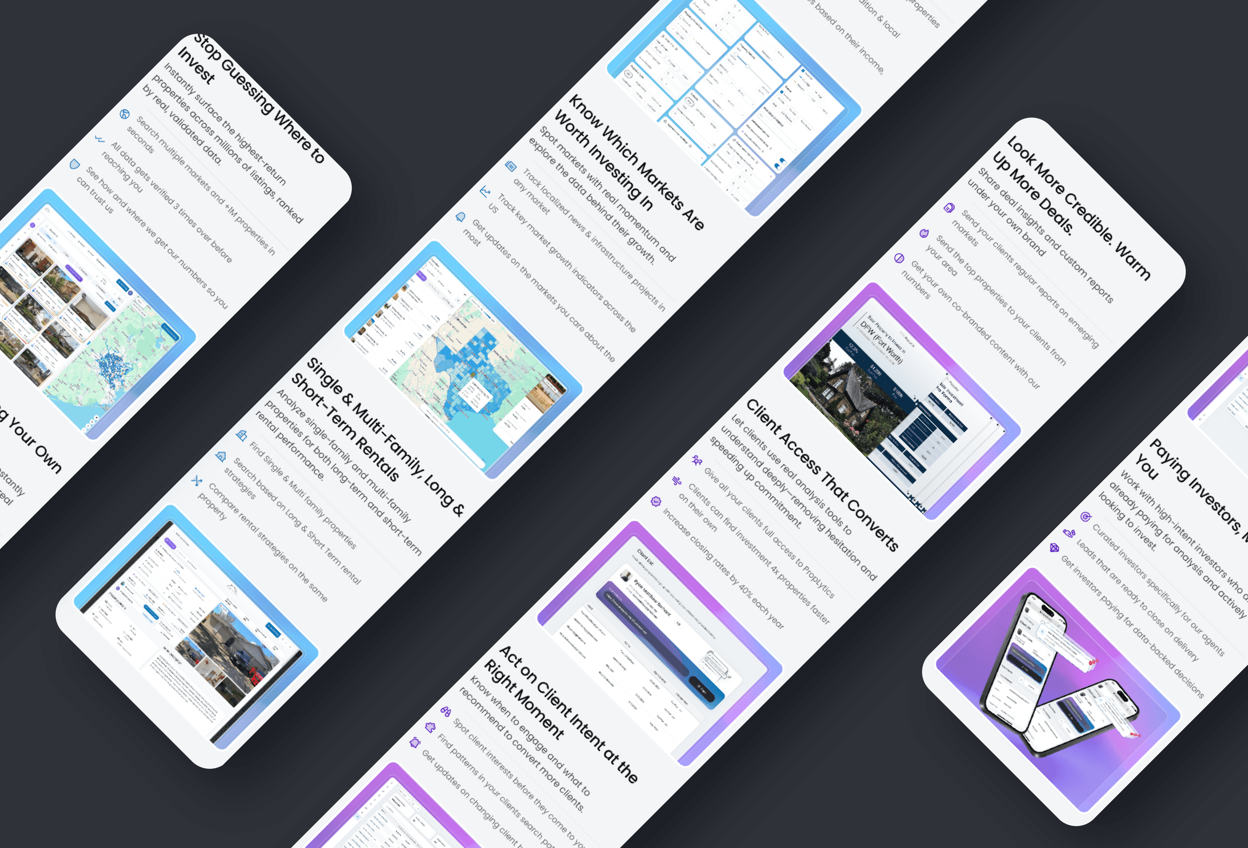 The PropLytics landing site is the company’s primary acquisition channel and must clearly communicate value while driving conversions. As the product grew, the development team was handling both core features and marketing updates, creating bottlenecks and slowing growth. I proposed separating the landing platform from the core product, reducing engineering pressure and giving sales and design direct control over messaging and experimentation. This shift enabled faster updates, feature requests, direct user messaging, and improved engagement tracking—turning the site into a scalable growth tool.
