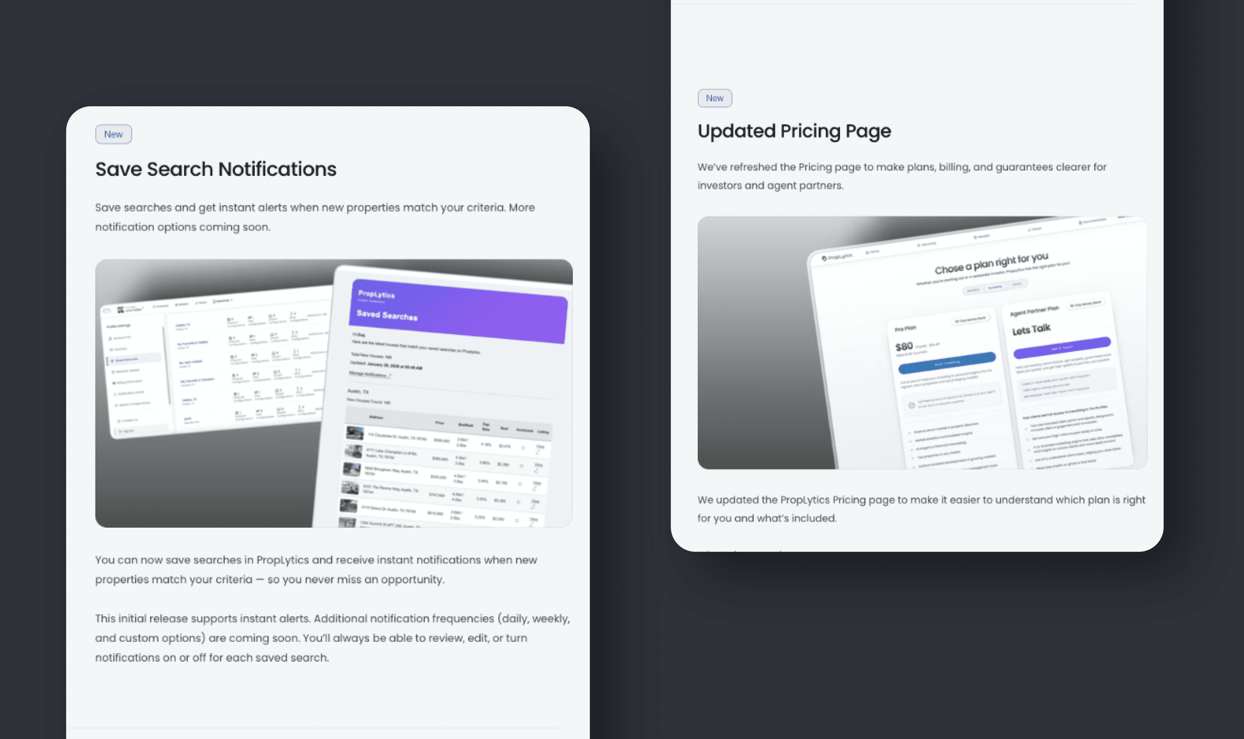 The landing platform was successfully separated from core product development, giving ownership of marketing content to the design and sales teams. This enabled faster and more dynamic updates, including the launch of a regular updates page, documentation hub, and public changelog—without requiring developer bandwidth. The new structure allowed experimentation with messaging, layout variations, and content strategies aimed at improving conversions. It also made it easier to update featured properties, clarify complex information, and dynamically adjust pages based on content needs while maintaining structural integrity.